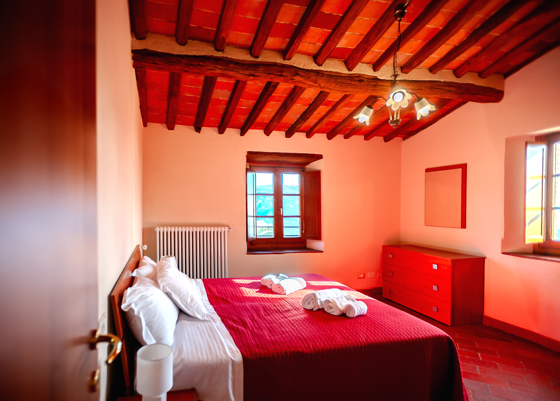 Ubicado en el segundo piso, se accede por la parte trasera. Compuesto por cuatro estancias: área de cocina / comedor, dos dormitorios de matrimonio, amplio salón utilizable como una sala de estar o dormitorio y baƱo con ducha. Con chimenea, TV con canales extranjeros, red WI-FI. El apartamento "La Familia" se reserva para Giovanni Cavalzani (propietario) durante el ejercicio de las actividades agrícolas que la finca requiere. Puede, sin embargo, estar disponible a petición. La superficie del apartamento es de 62 metros cuadrados.